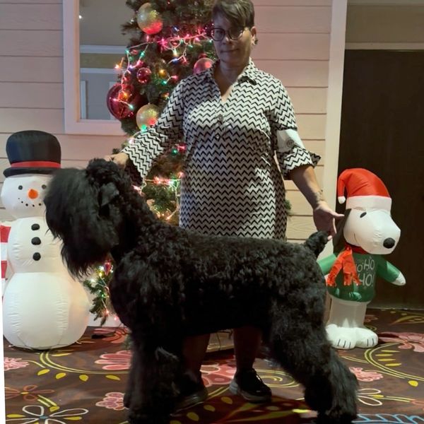 We do our best to select breeding pairs who exemplify type, temperament, and good health. Our goal is to produce dogs who can help secure the future of healthy Black Russian Terriers while preserving genetic diversity. "Cornbread" recently finish his AKC Championship with strong competition, being awarded Best of Breed from the classes over all the Champions in the ring! AKC CH Black Beard's Live Like It's Your Last Day CGC, (CHIC No. 212886). Cornbread is owned and loved by Renee DeClouette and Mark Holland, Jr. and co-owned by Christine Robinson.